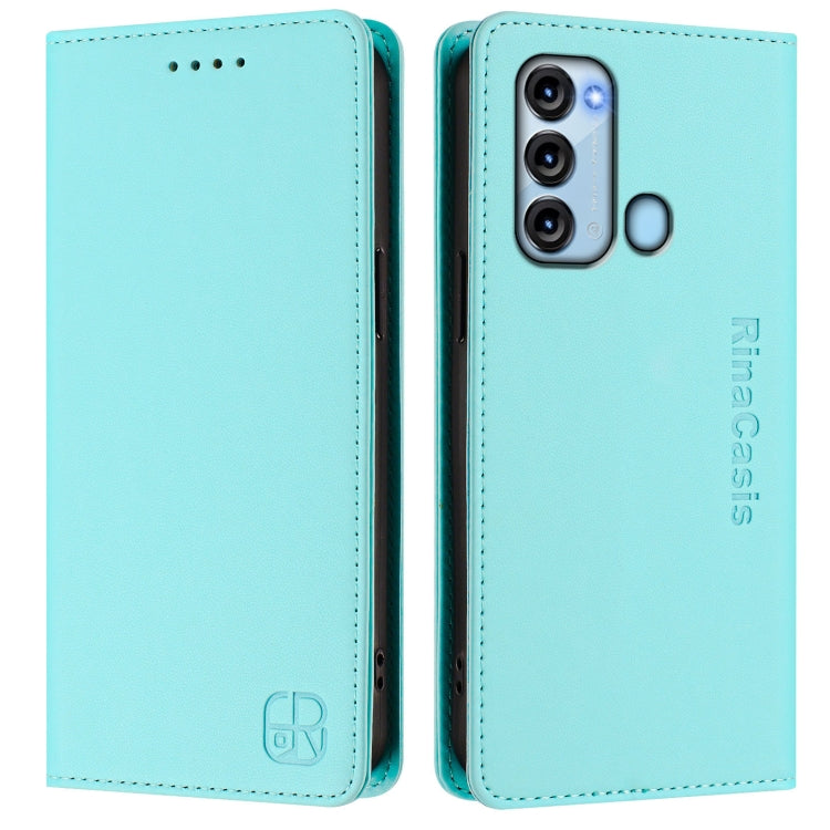 Funda de Cuero Rfid con Doble Pliegue y Succión Magnética para Itel S17/S661W/Vision 3 Rc01 (Verde Menta)