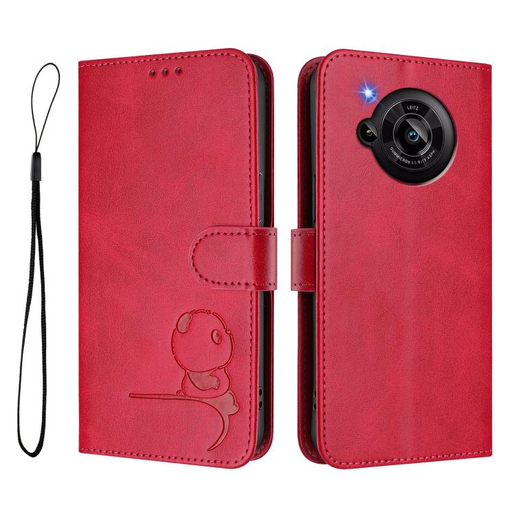 Funda de cuero RFID con estampado de panda y cordón para Sharp Aquos R7 SH-52C (rosa)