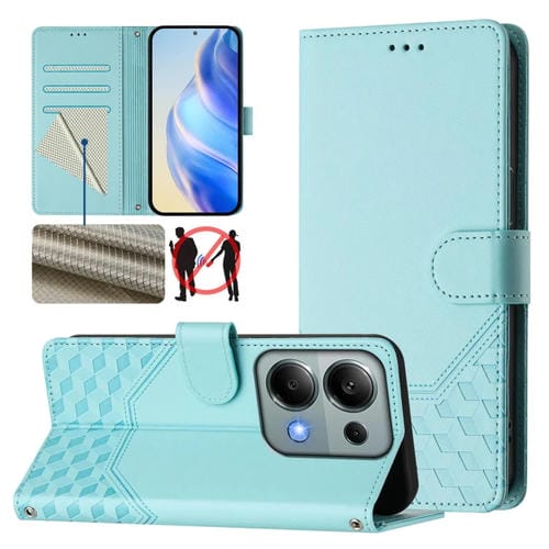 Funda de Cuero Rfid con Relieve de Panal Global para Redmi Note 13 Pro 4G (Verde Menta)