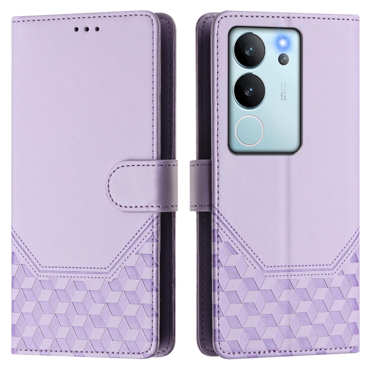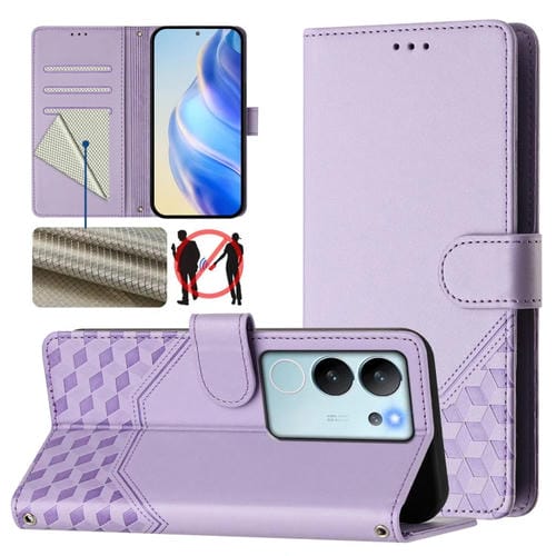 Funda de Cuero Rfid con Relieve de Panal Global para Vivo V29E 5G / Y200 5G (Morado Claro)