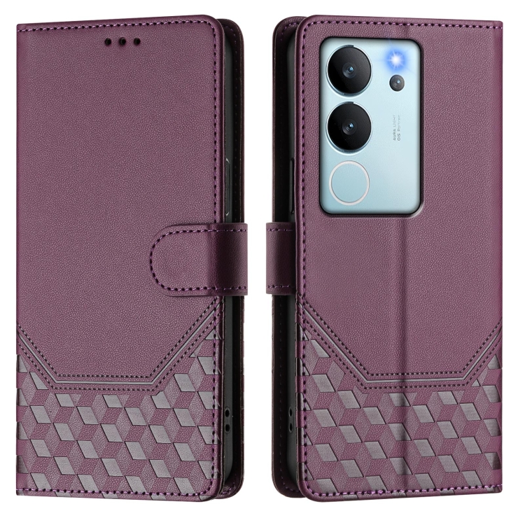 Funda de Cuero Rfid con Relieve de Panal Global para Vivo V29E 5G / Y200 5G (Violeta)