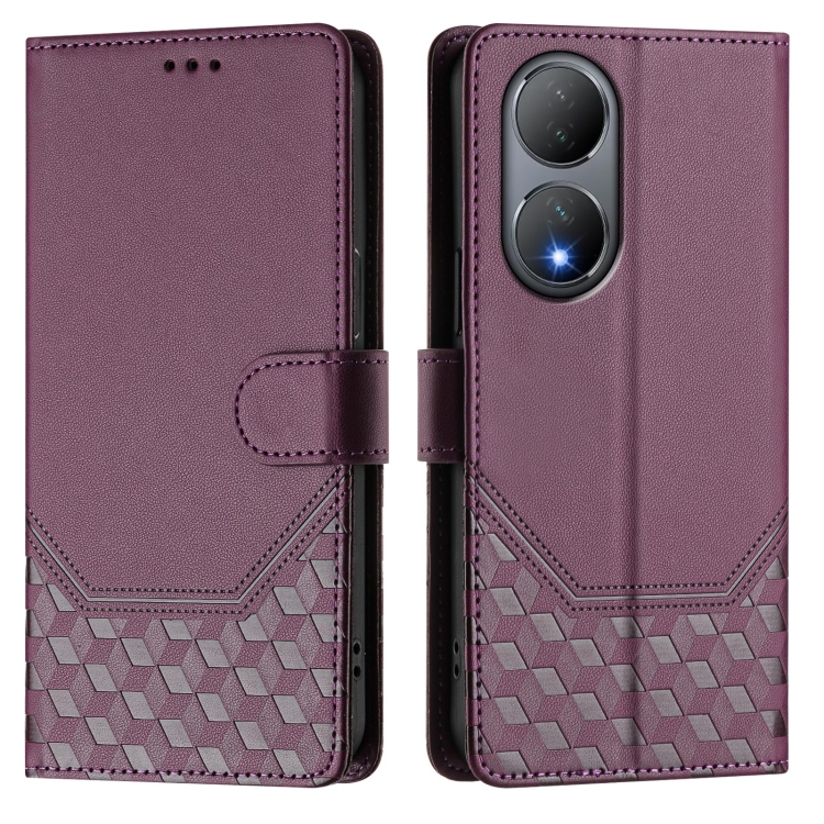 Funda de Cuero Rfid con Relieve de Panal Global para Vivo Y100 5G (Violeta)