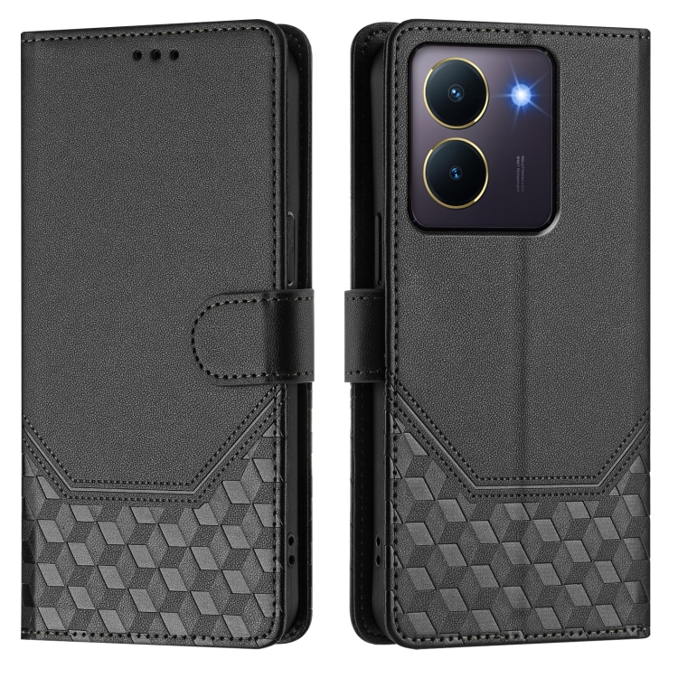 Funda de Cuero Rfid con Relieve de Panal Global para Vivo Y36 5G/4G/Y27S 4G (Negra)