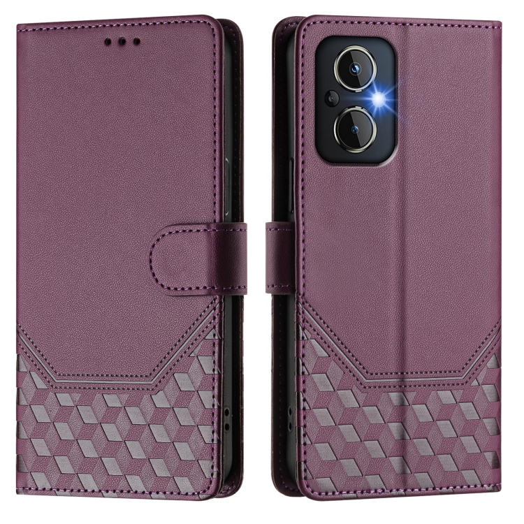 Funda de Cuero Rfid con Relieve de Panal para OnePlus Nord N20 5G (Violeta)