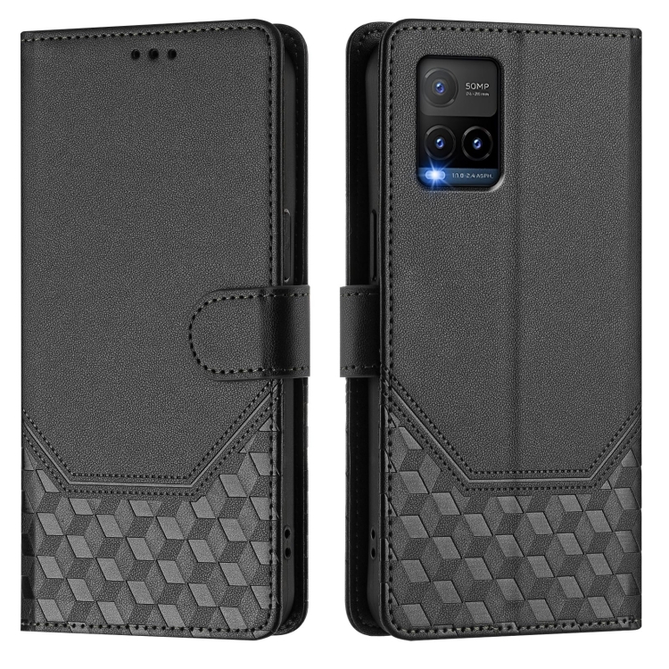 Funda de Cuero Rfid con Relieve de Panal para Vivo Y33S 4G / Y21 2021 / Y21S / Y21T (Negra)