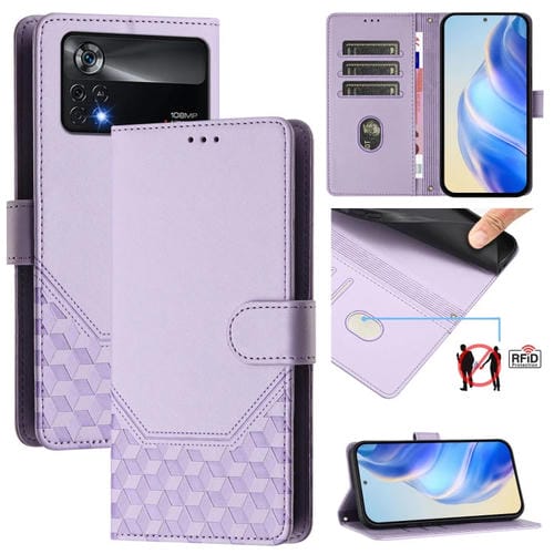 Funda de Cuero Rfid con Relieve de Panal para Xiaomi Poco X4 Pro 5G (Morado Claro)