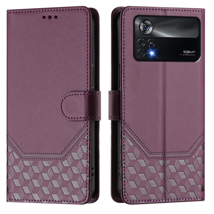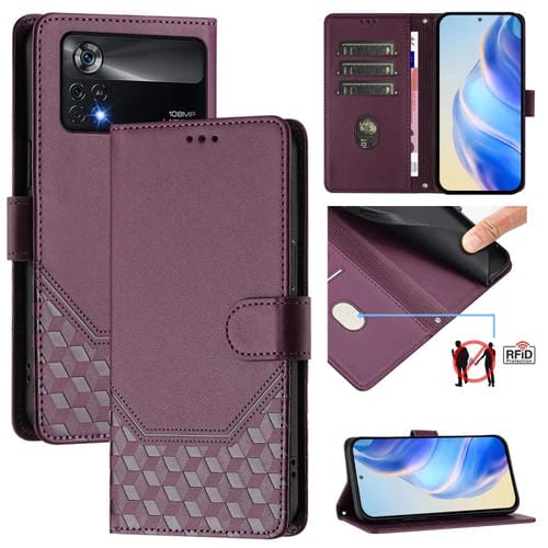 Funda de Cuero Rfid con Relieve de Panal para Xiaomi Poco X4 Pro 5G (Violeta)