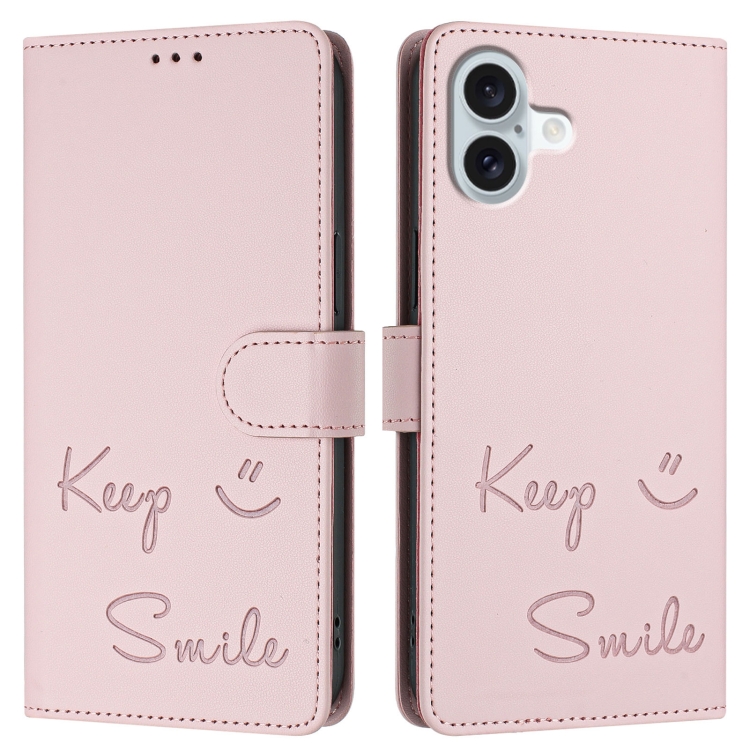 Funda de Cuero Rfid con Relieve de Sonrisa para iPhone 16 Plus (Rosa)