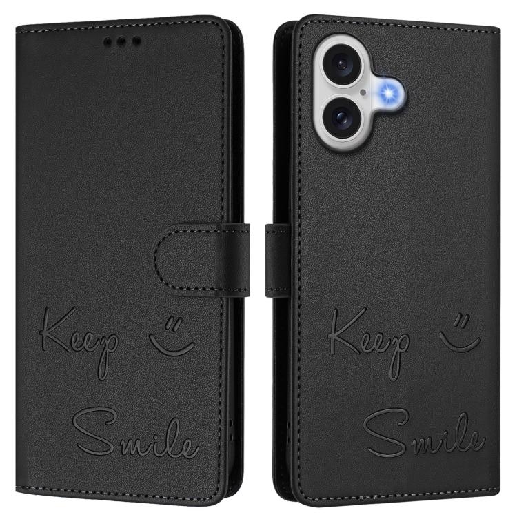 Funda de cuero RFID con relieve de sonrisa para iPhone 17 (negra)