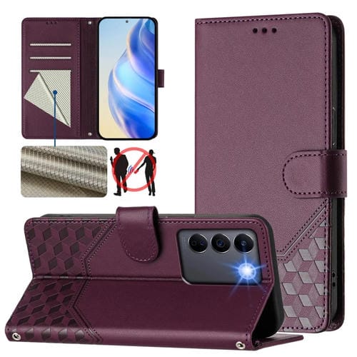 Funda de Cuero Rfid con Relieve En Panal Global para Vivo V27E 4G/T2 4G (Violeta)