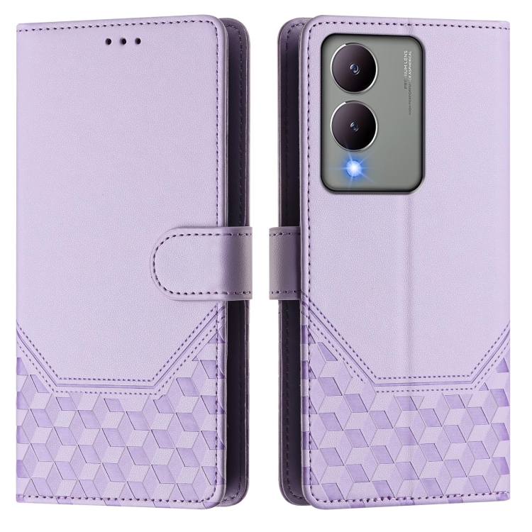 Funda de Cuero Rfid con Relieve En Panal Global para Vivo Y17S (Morado Claro)