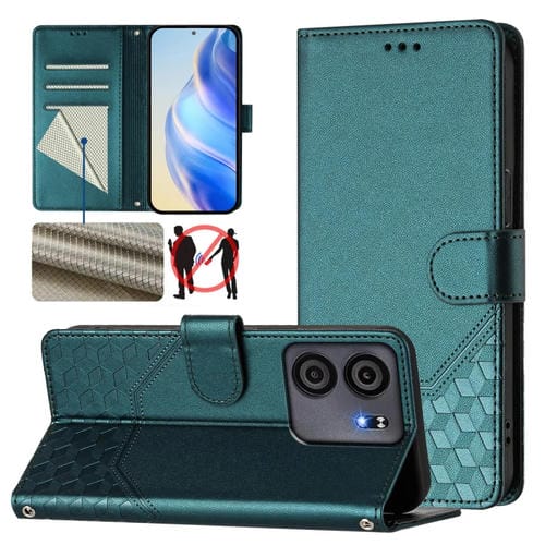 Funda de Cuero RFID con Relieve Panal para Blu View 5 (Verde Pavo Real)