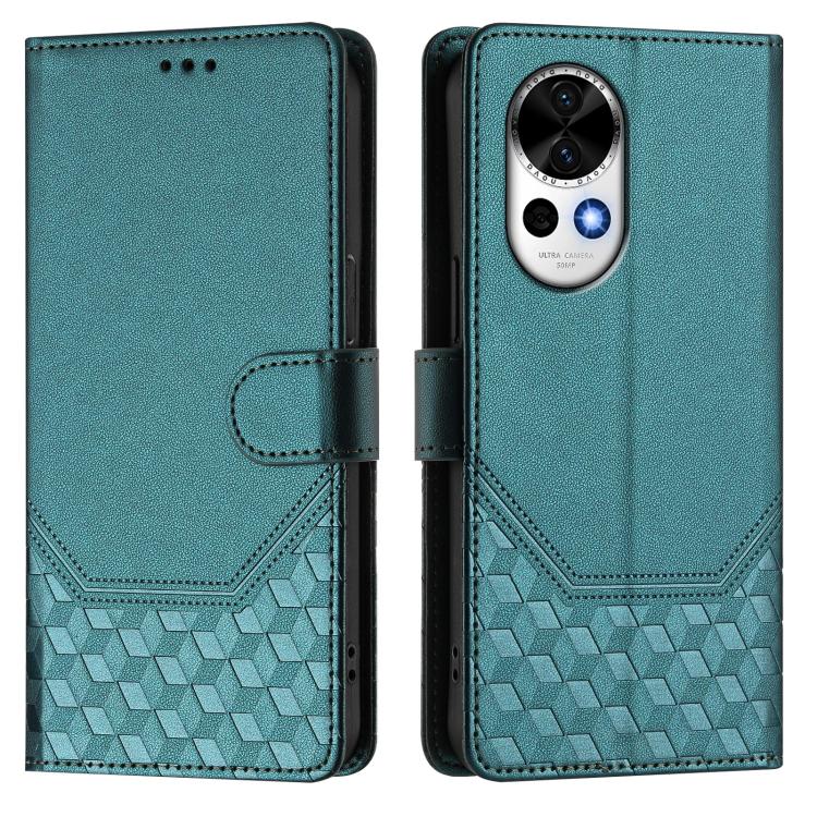 Funda de Cuero Rfid con Relieve en Panal para Huawei Nova 13/Nova 12 (Verde Pavo Real)