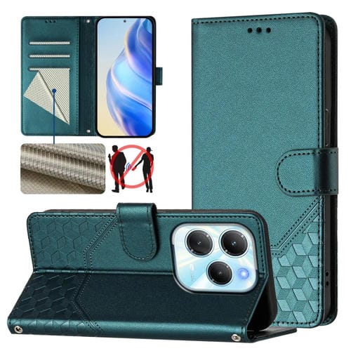 Funda Cuero Rfid Relieve Panal para Infinix Hot 40 4G y Hot 40 Pro 4G (Verde Pavo Real)