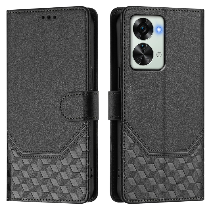 Funda de Cuero Rfid con Relieve en Panal para OnePlus Nord 2T (Negra)