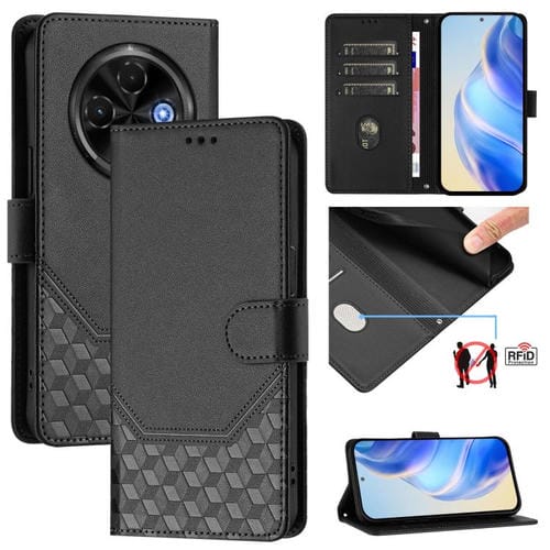 Funda de Cuero Rfid con Relieve en Panal para Tecno Spark 30C 5G y Pop 9 5G (Negro)