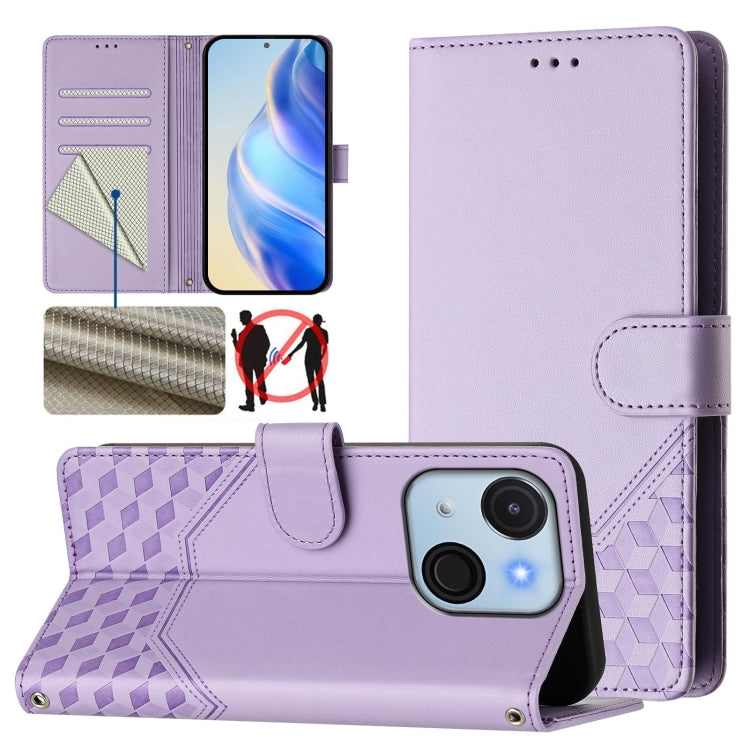 Funda de Cuero Rfid con Relieve en Panal para Teléfono Itel A50C (Morado Claro)