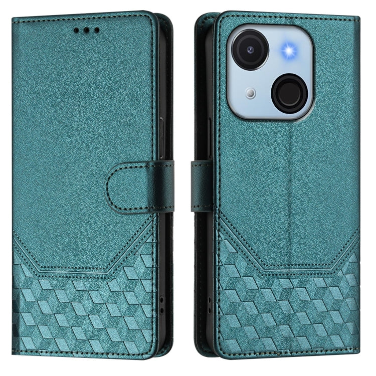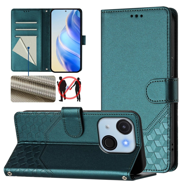 Funda de Cuero Rfid con Relieve en Panal para Teléfono Itel A50C (Verde Pavo Real)