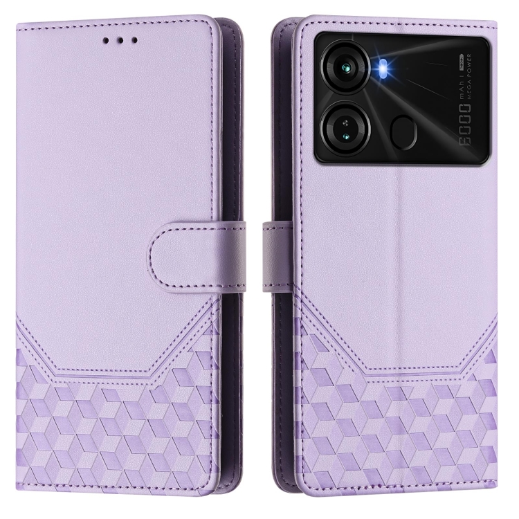 Funda de Cuero Rfid con Relieve en Panal para Teléfono Itel P40 (Morado Claro)