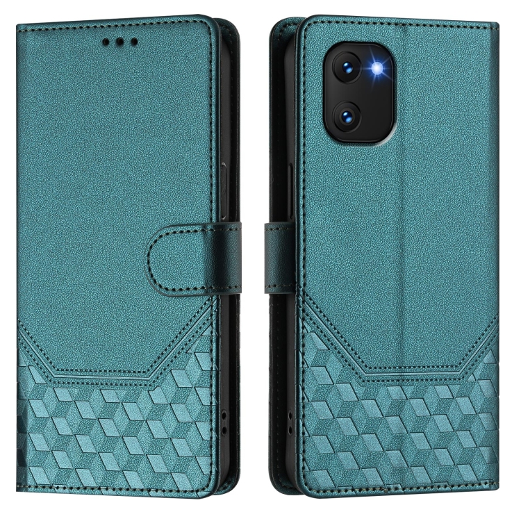Funda de Cuero Rfid con Relieve en Panal para Umidigi Power 7/7S (Verde Pavo Real)