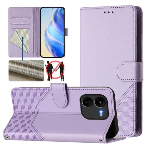 Funda de Cuero Rfid con Relieve En Panal para Vivo Iqoo Z9X (Morado Claro)