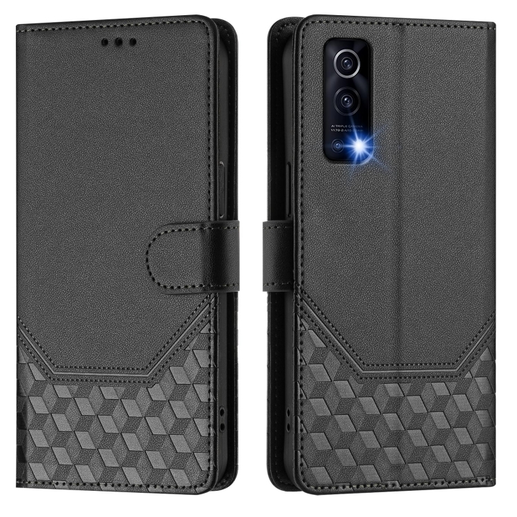 Funda de Cuero Rfid con Relieve En Panal para Vivo Y72 5G/Iqoo Z3 (Negra)
