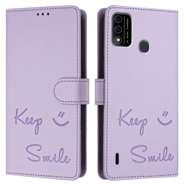 Funda de Cuero Rfid con Relieve Smile para Teléfono Itel A48 (Morado Claro)