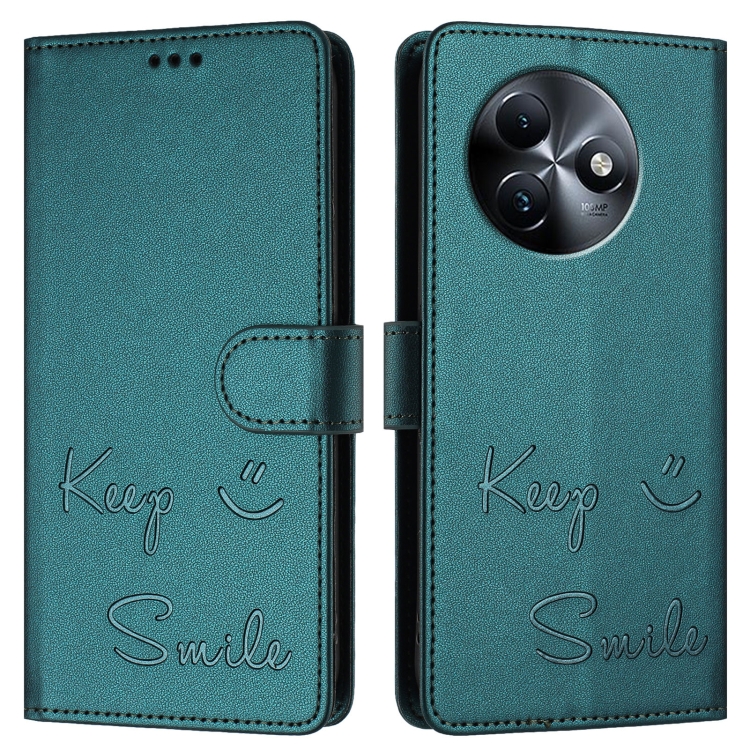 Funda de Cuero Rfid con Relieve Smile para Teléfono Itel S24 (Verde Pavo Real)