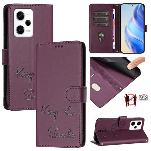 Funda de Cuero Rfid con Relieve Sonriente Explorer para Redmi Note 12 (Violeta)