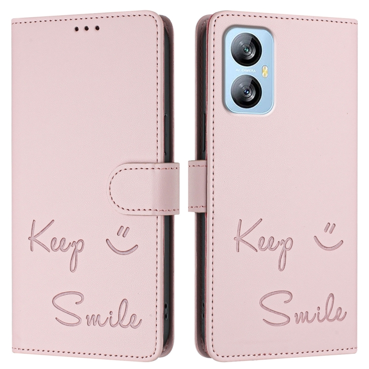 Funda de Cuero Rfid con Relieve Sonriente para BlackView A52 (Rosa)