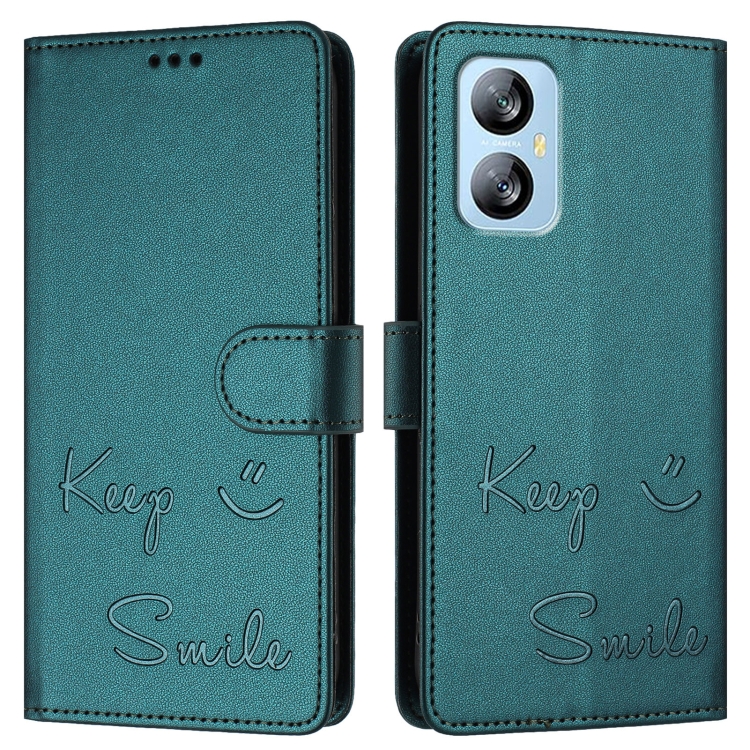 Funda de Cuero Rfid con Relieve Sonriente para BlackView A52 (Verde Pavo Real)