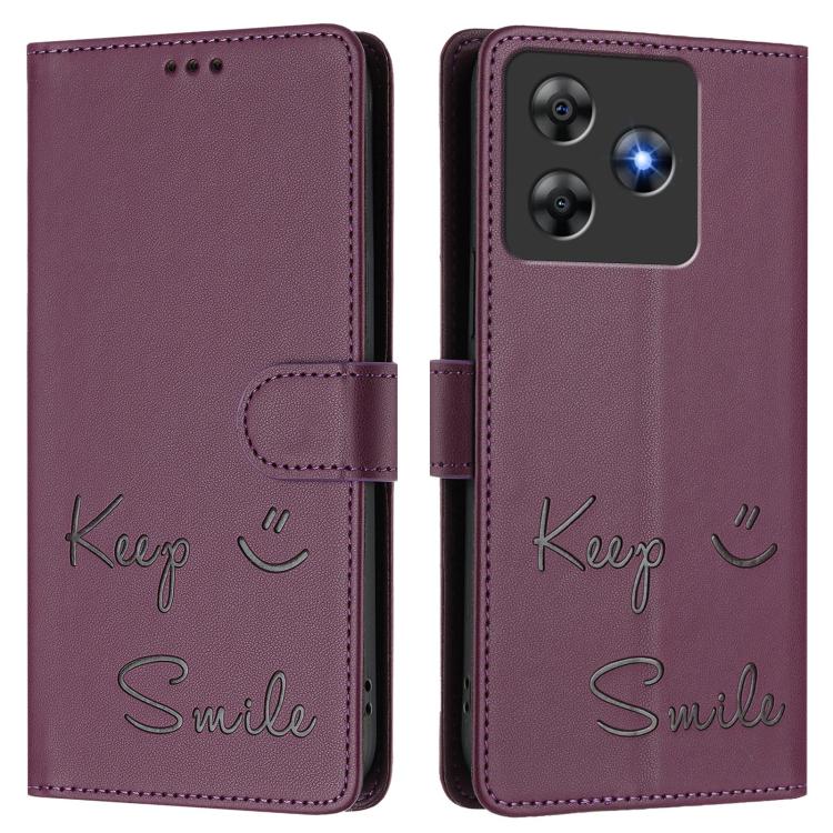 Funda de Cuero Rfid con Relieve Sonriente para BlackView Wave 8C (Violeta)