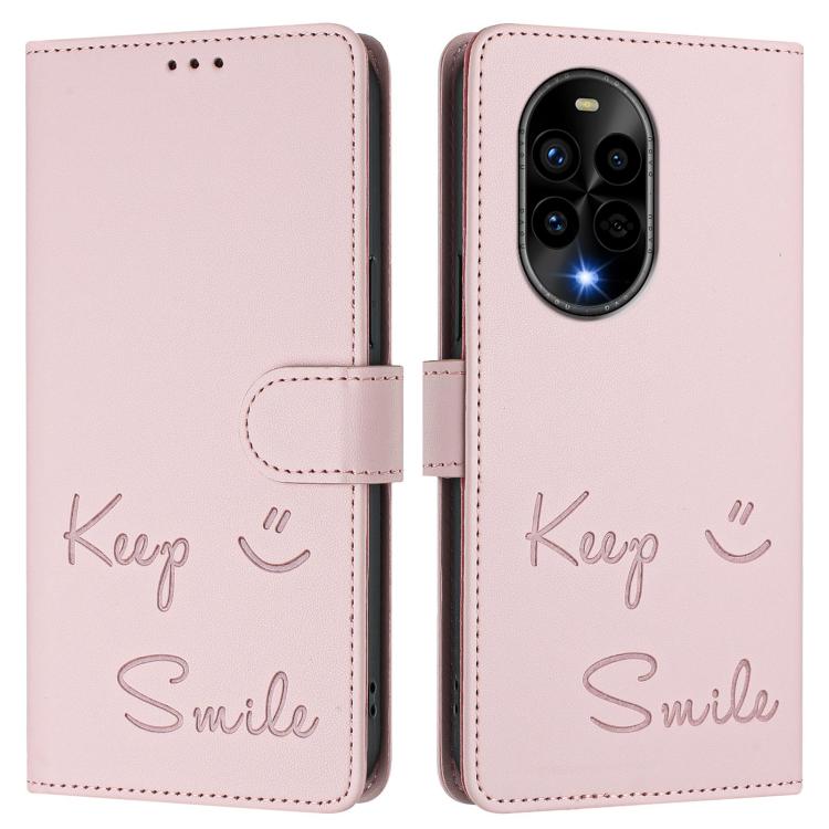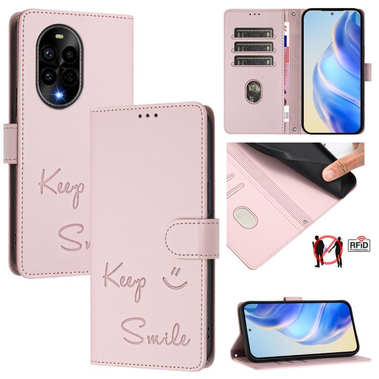 Funda de Cuero Rfid con Relieve Sonriente para Huawei Nova 13 Pro (Rosa)