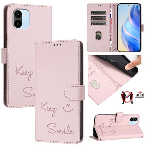Funda de Cuero Rfid con Relieve Sonriente para Redmi A1/A2 (Rosa)