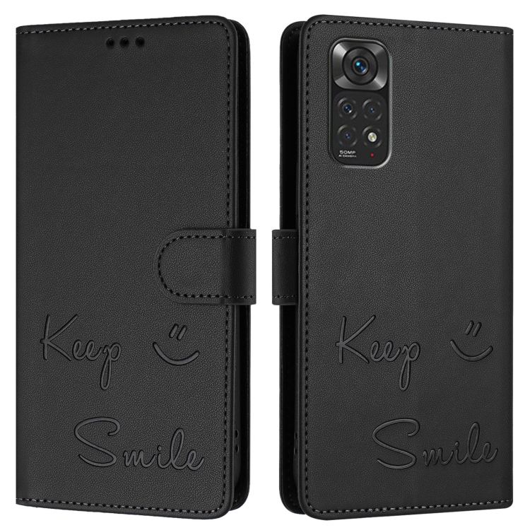 Funda de Cuero Rfid con Relieve Sonriente para Redmi Note 12S 4G (Negra)