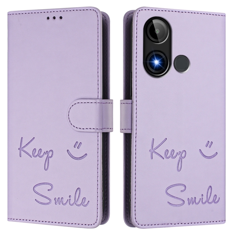 Funda Cuero RFID con Relieve Sonriente para Blu C9 (Morado Claro)