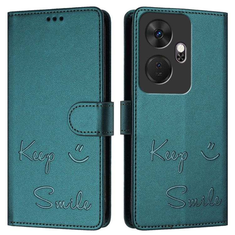 Funda de Cuero Rfid con Relieve Sonriente para Teléfono Itel P55+ (Verde Pavo Real)