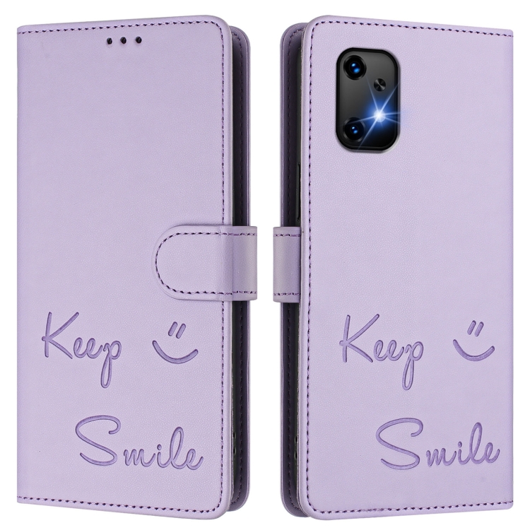 Funda de Cuero Rfid con Relieve Sonriente para Umidigi Bison X20 (Morado Claro)