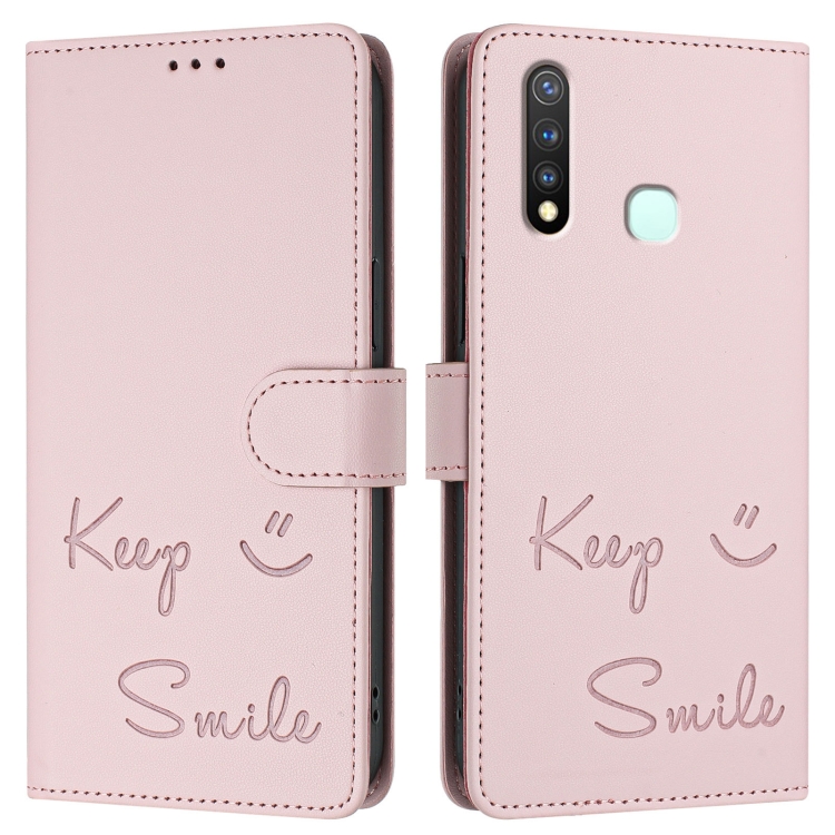 Funda de Cuero Rfid con Relieve Sonriente para Vivo Y19/U3/Y5S/Z5I/U20 (Rosa)