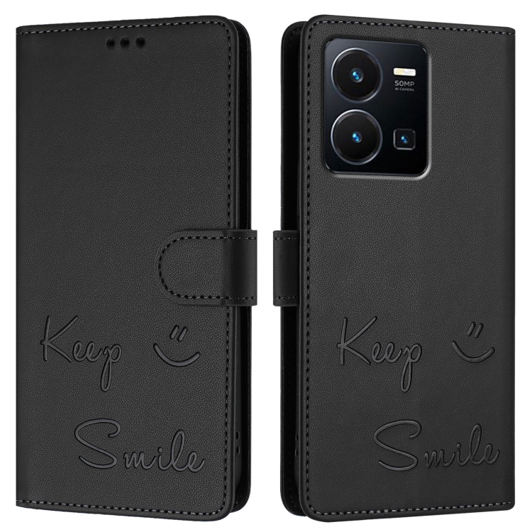 Funda de Cuero Rfid con Relieve Sonriente para Vivo Y77 5G Global / Y77E 5G (Negra)