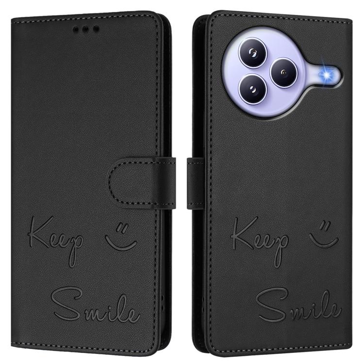 Funda de cuero RFID con relieve sonriente para Xiaomi Civi 5 Pro 5G (negra)