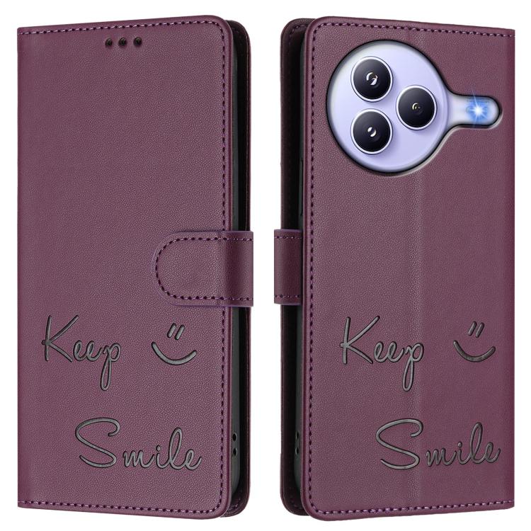 Funda de cuero RFID con relieve sonriente para Xiaomi Civi 5 Pro 5G (violeta)