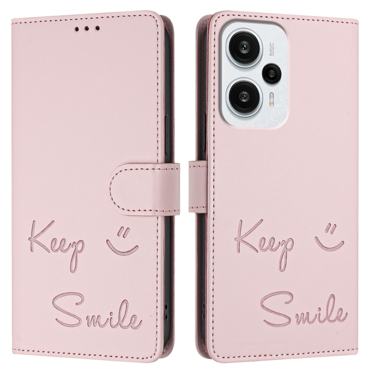 Funda de Cuero Rfid con Relieve Sonriente para Xiaomi Poco F5 (Rosa)