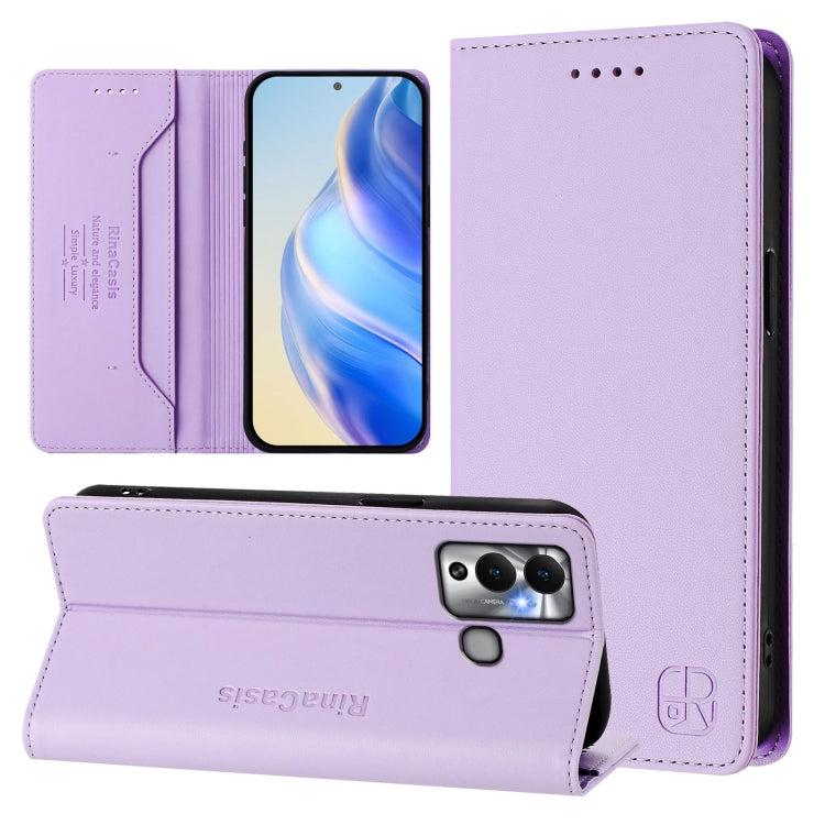 Funda de Cuero Rfid para Infinix Hot 12 Play Rc01 con Succión Magnética y Doble Pliegue (Morado Claro)