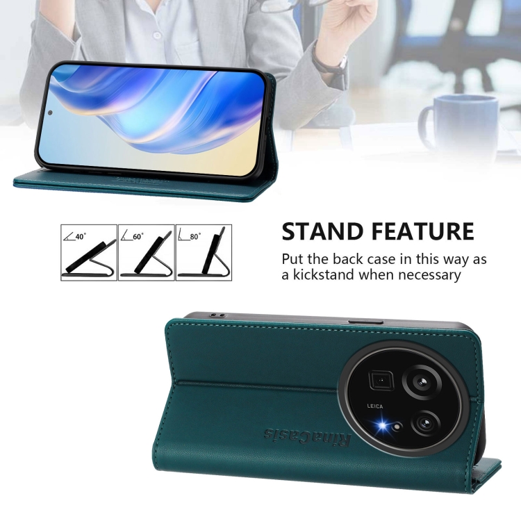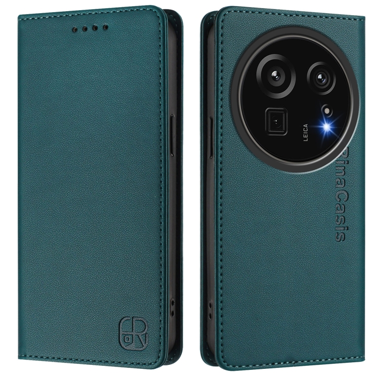 Funda de Cuero con Doble Pliegue y Succión Magnética RFID para Sharp Aquos R9 Pro Sh-54E Rc01 (Verde Oscuro)