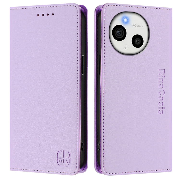 Funda de Cuero con Doble Pliegue y Succión Magnética RFID para Sharp Aquos Sense9 Plus RC01 (Morado Claro)