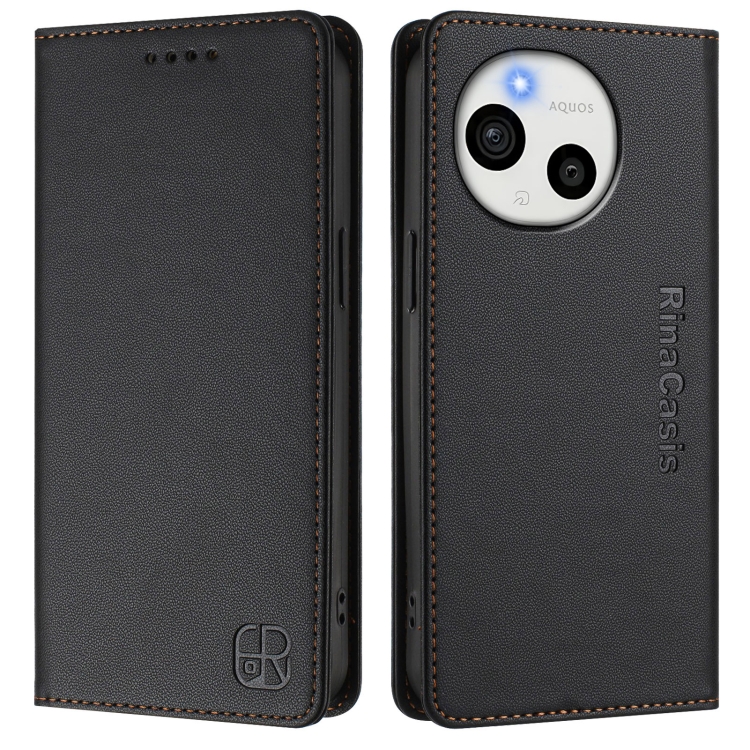 Funda de Cuero con Doble Pliegue y Succión Magnética RFID para Sharp Aquos Sense9 Plus RC01 (Negra)