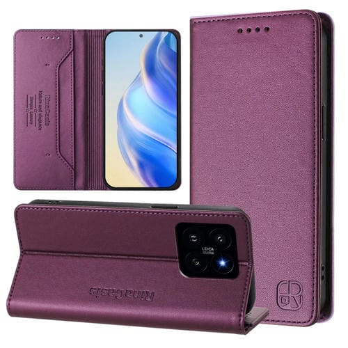 Funda De Cuero Rfid Con Succión Magnética Y Doble Pliegue Para Xiaomi 14 5G Rc01 (Violeta)