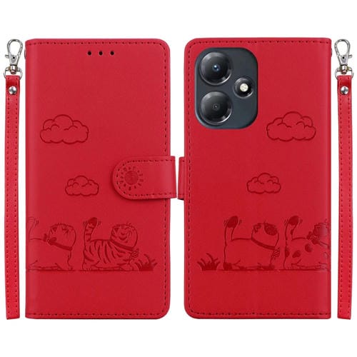 Funda de Cuero Rfid para Teléfono Infinix Hot 30 Play con Lindos Gatos (Rojo)