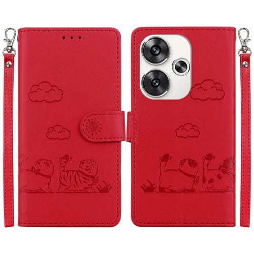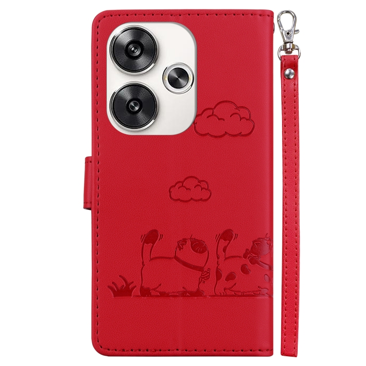 Funda de Cuero Rfid con Diseño de Gatos para Xiaomi Poco F6 (Roja)